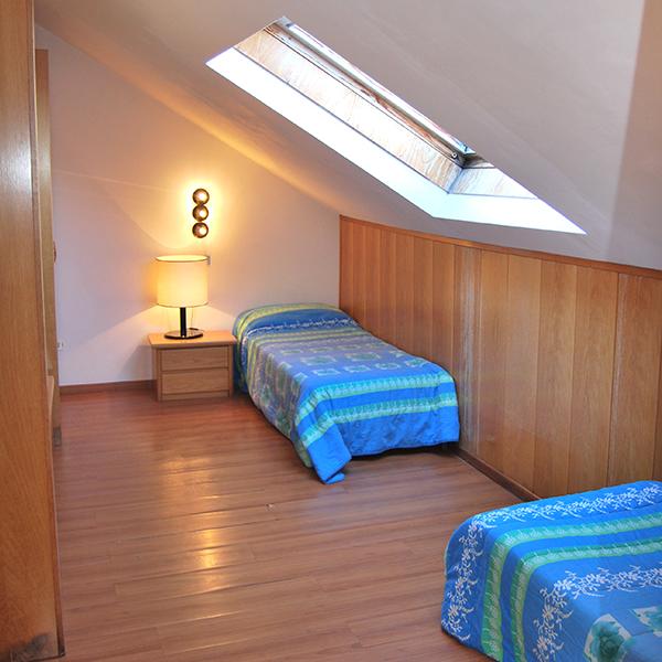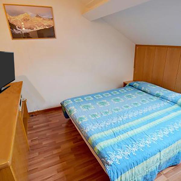 Appartamento mansardato con arredamento essenziale e caldo, composto da soggiorno con 1 letto singolo, Tv-sat Led, cassaforte, ampia camera con letto matrimoniale, interparete attrezzata (armadio divisorio) e 2 letti singoli, angolo cottura attrezzato con stoviglie, vasellame e microonde, 2 finestre tipo “Velux” a soffitto (una per camera), bagno con box doccia e asciugacapelli. Pavimento senza moquette.