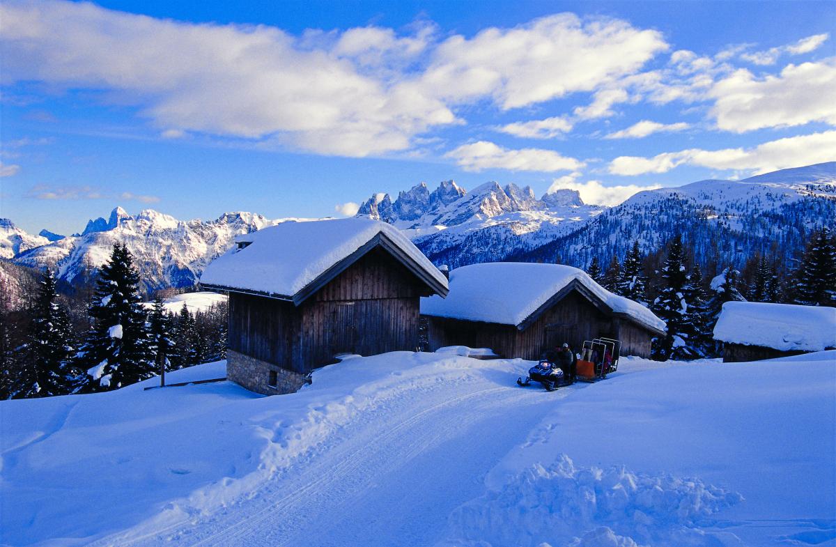 Langlaufliebhaber finden im magischen und eindrucksvollen Viote-Becken am Fuße der Tre Cime-Gruppe mehr als 37 km Pisten mit Bar, Restaurant, Umkleidekabinen und einer organisierten Skischule.